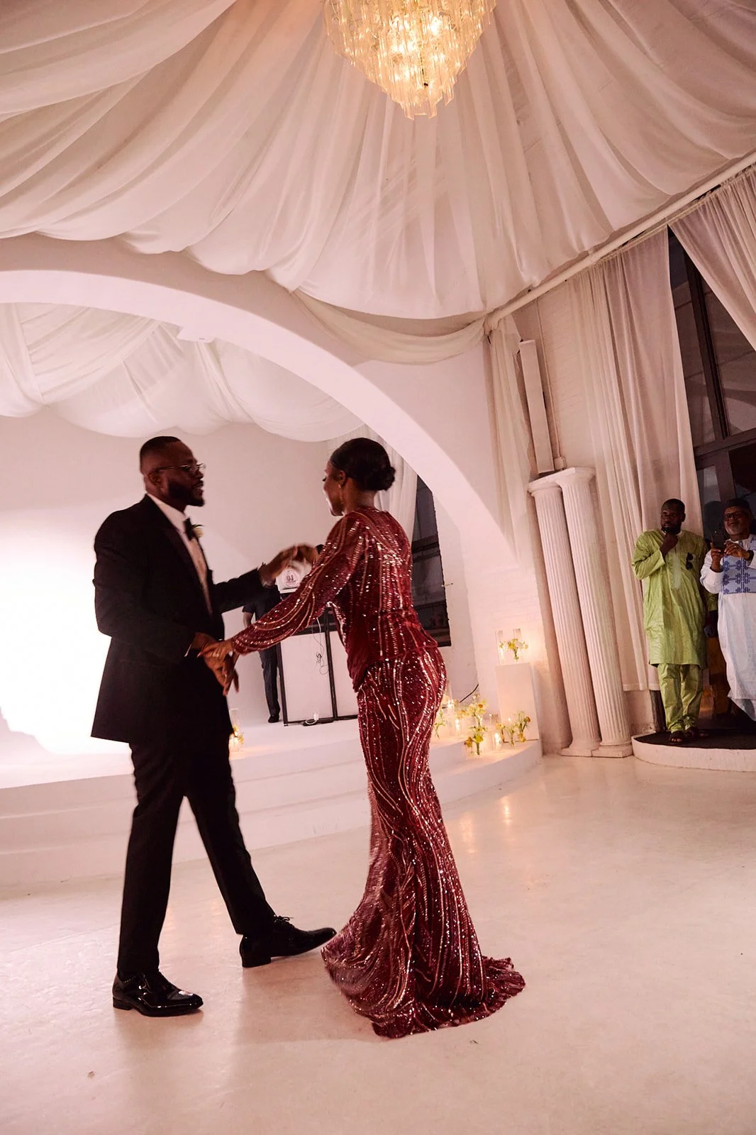 The day opened with a traditional Islamic ceremony at the mosque, where vows were exchanged in the presence of loved ones. An intimate dinner followed, styled with intentional details and a palette drawn from golden sunlight. Guests were treated to cultural dishes, traditional music, and sculptural design elements that set a striking tone. Vibrant summer fashion brought playful color to the scene, seamlessly shifting into a high-energy dance floor that carried the celebration into the night.