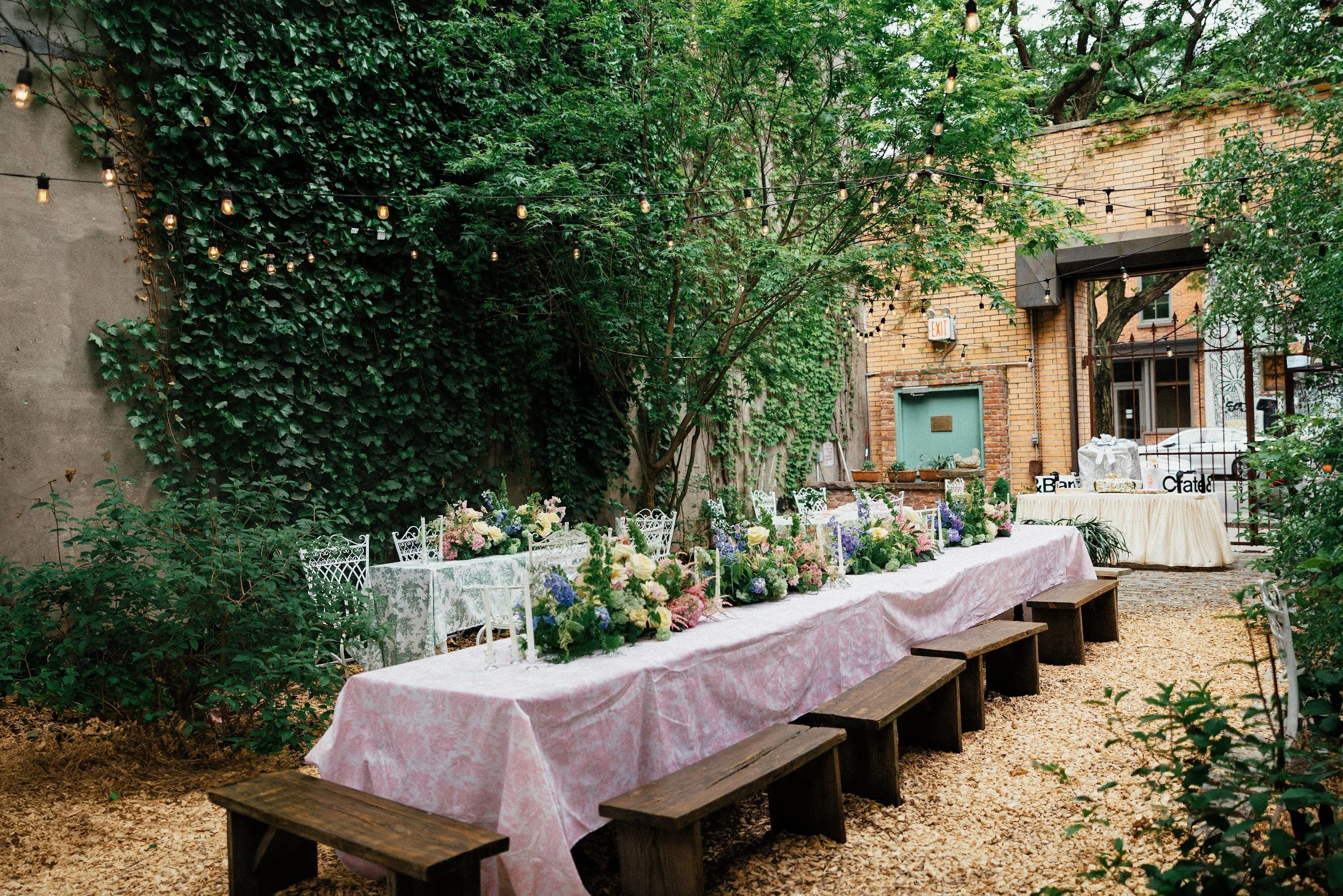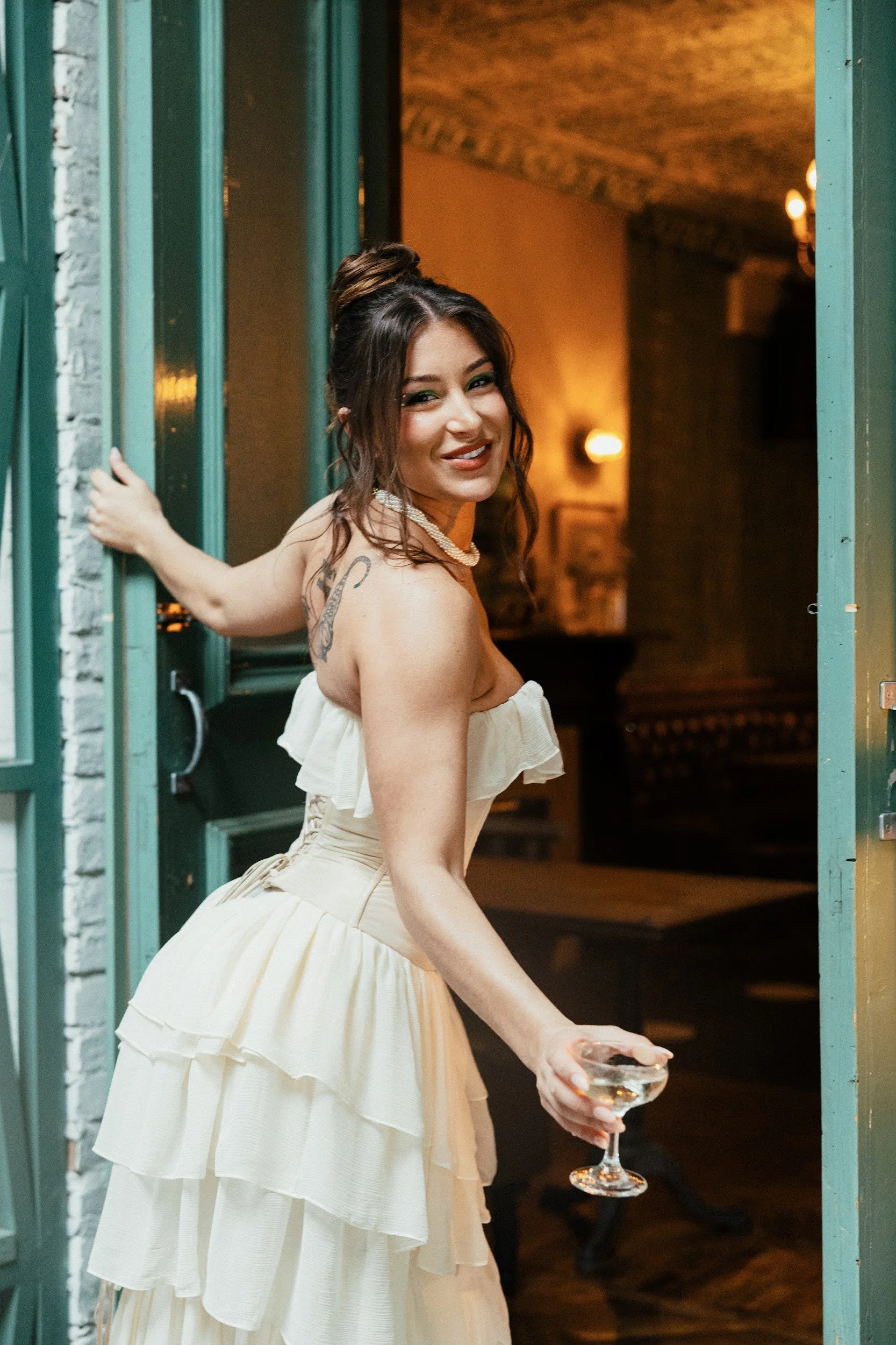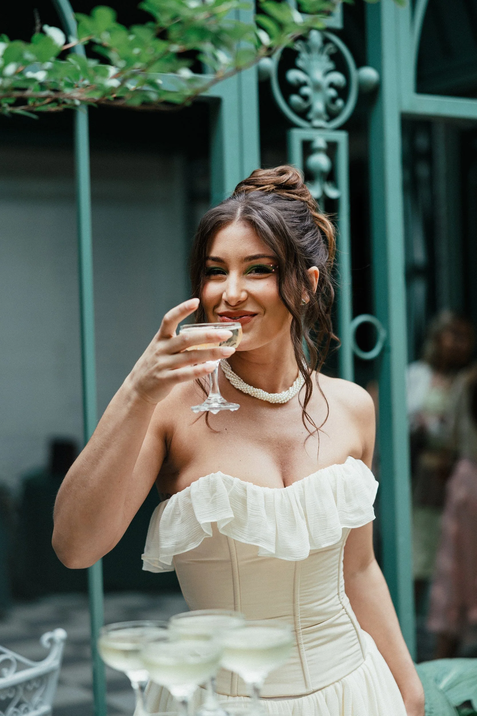 The day unfolded beneath the atrium of Milk & Roses, where a Marie Antoinette–inspired theme set the tone for a day of feminine energy, indulgence and charm. Floral linens dressed the tables, while vintage details layered the space with old-world romance. Guests sipped wine, savored fresh bread, and took home bottles of olive oil as thoughtful favors. With lively entertainment and curated activities woven throughout, the celebration felt both playful and refined—a modern nod to French decadence in the heart of Brooklyn.