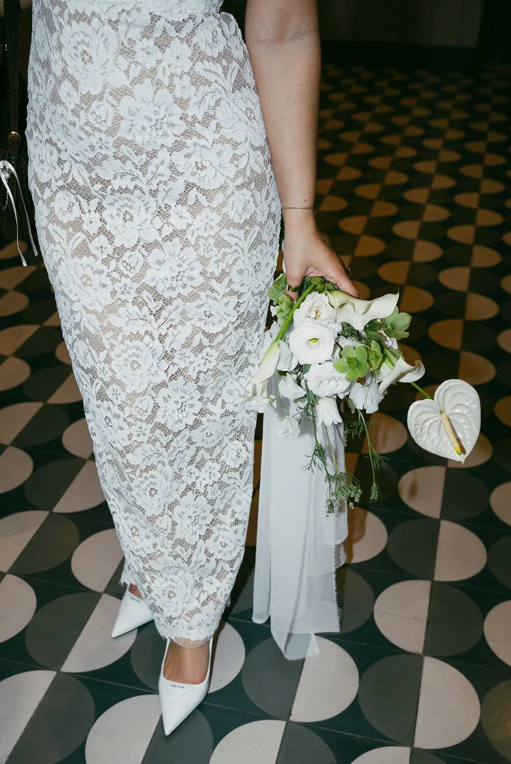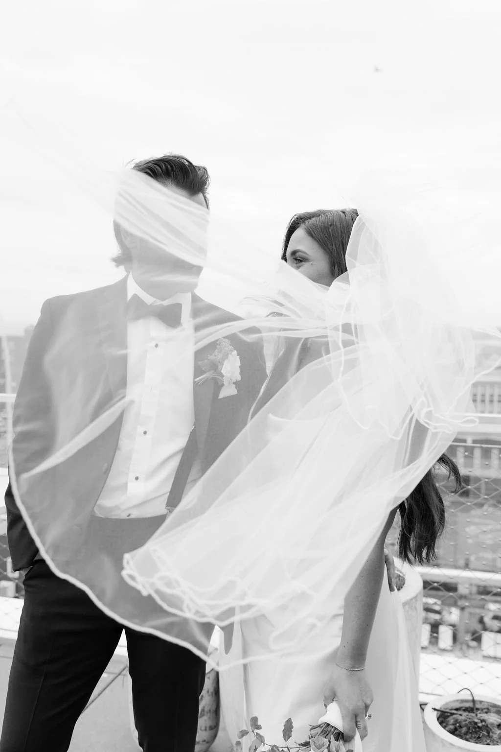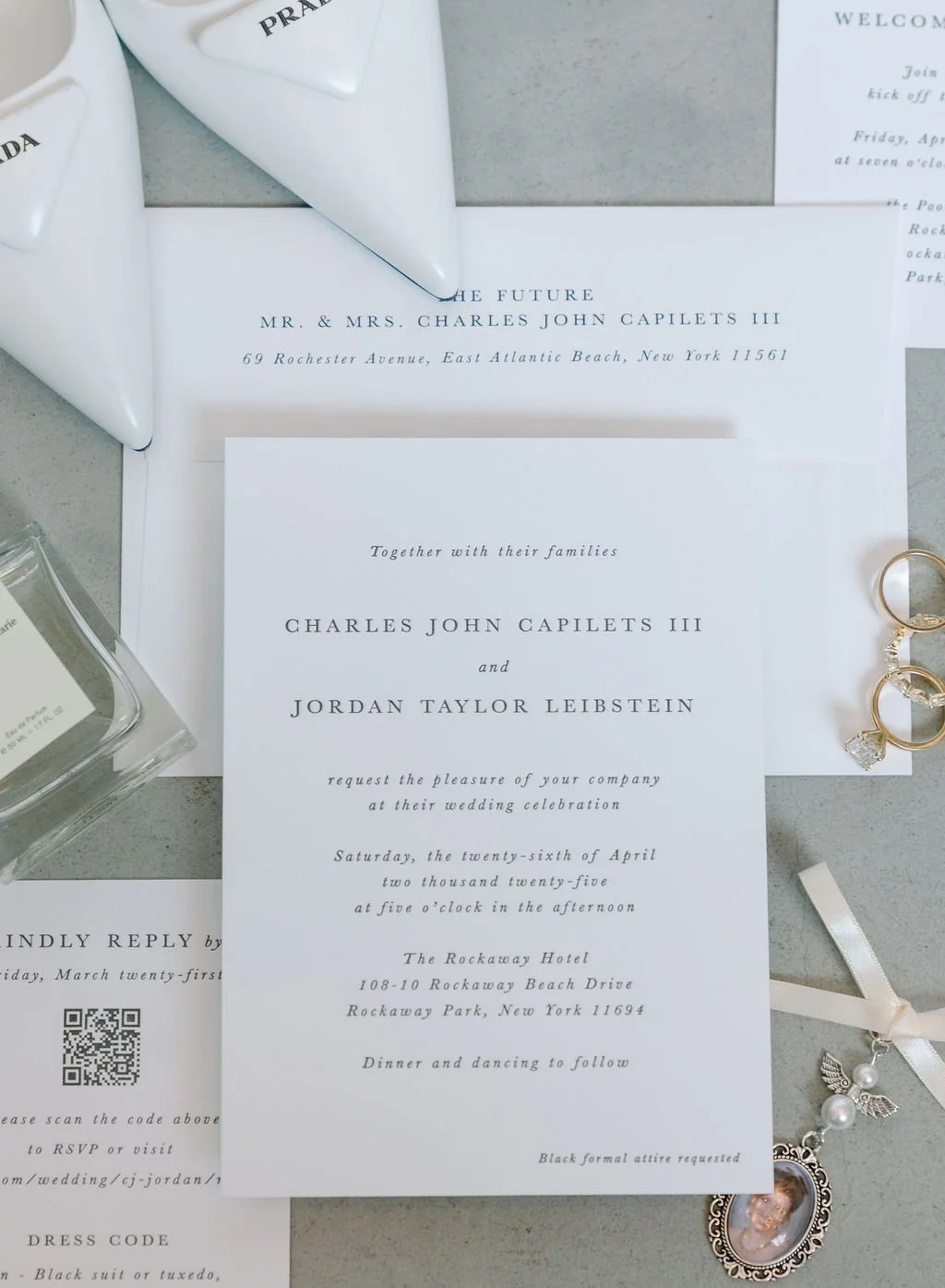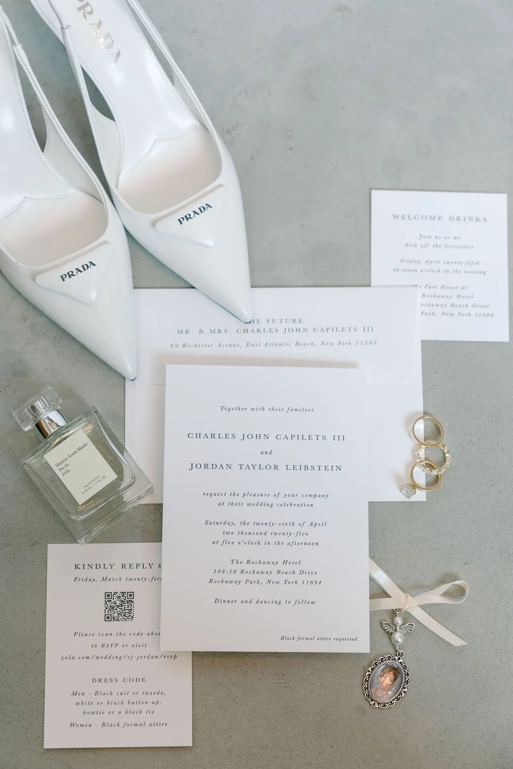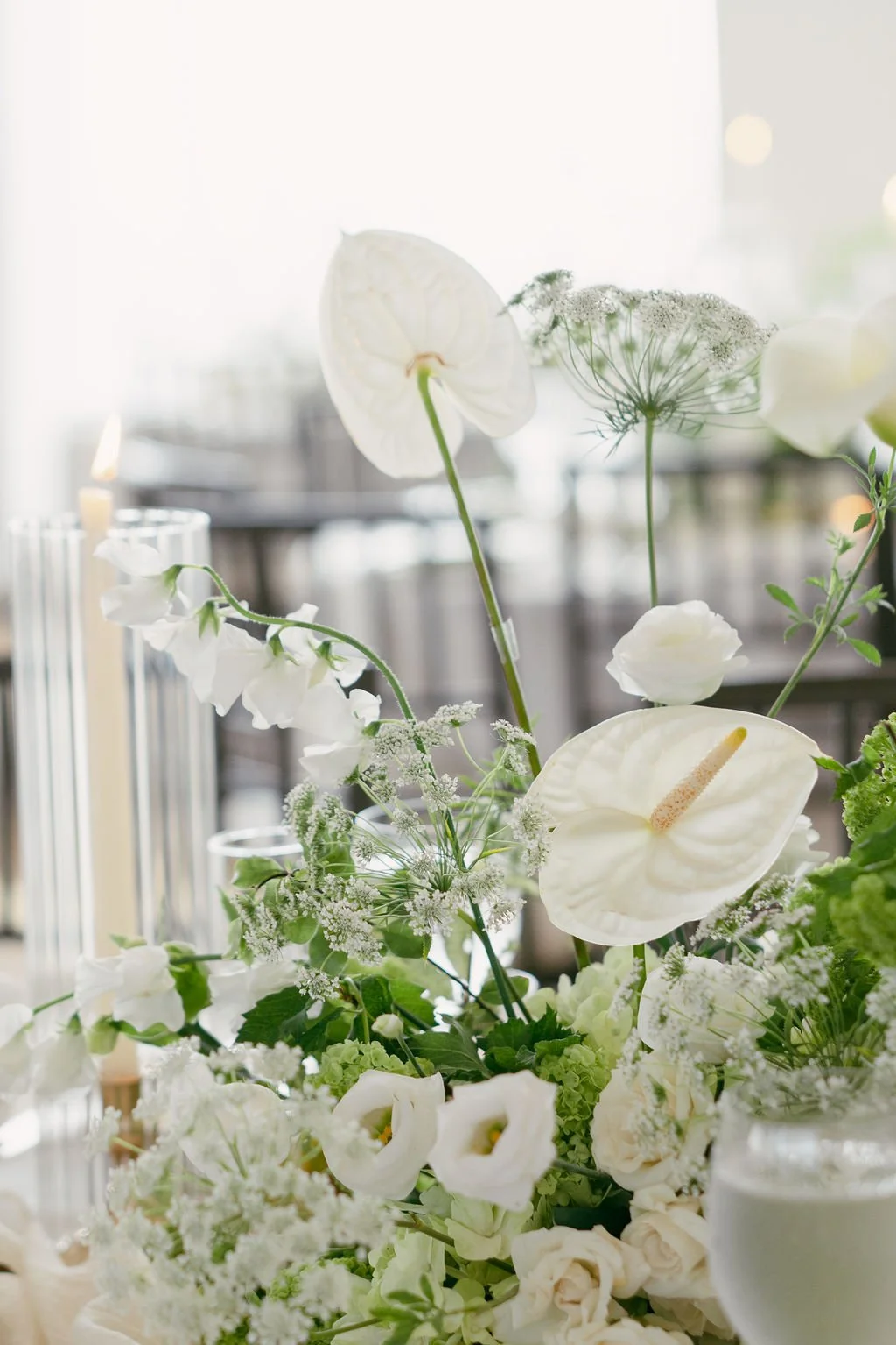 The couple’s wedding day was a study in modern elegance, with a neutral palette of black, white, and lush greenery creating a timeless backdrop. Tables were accented with fresh fruit elements, adding subtle pops of color and texture throughout the space. The day included stunning bridal portraits that captured the couple’s effortless style, and a surprise visit from their beloved puppy added a playful, personal touch. Minimalist design, thoughtful details, and heartfelt moments combined for a celebration that felt both chic and intimately joyful.