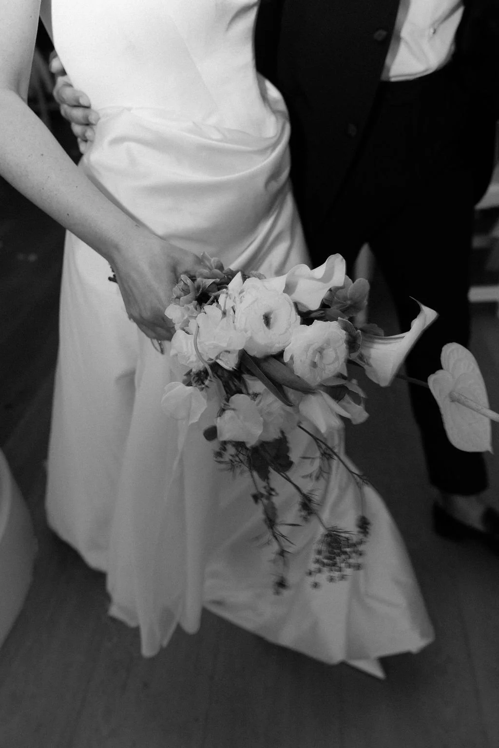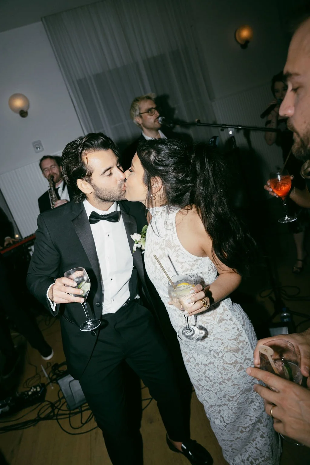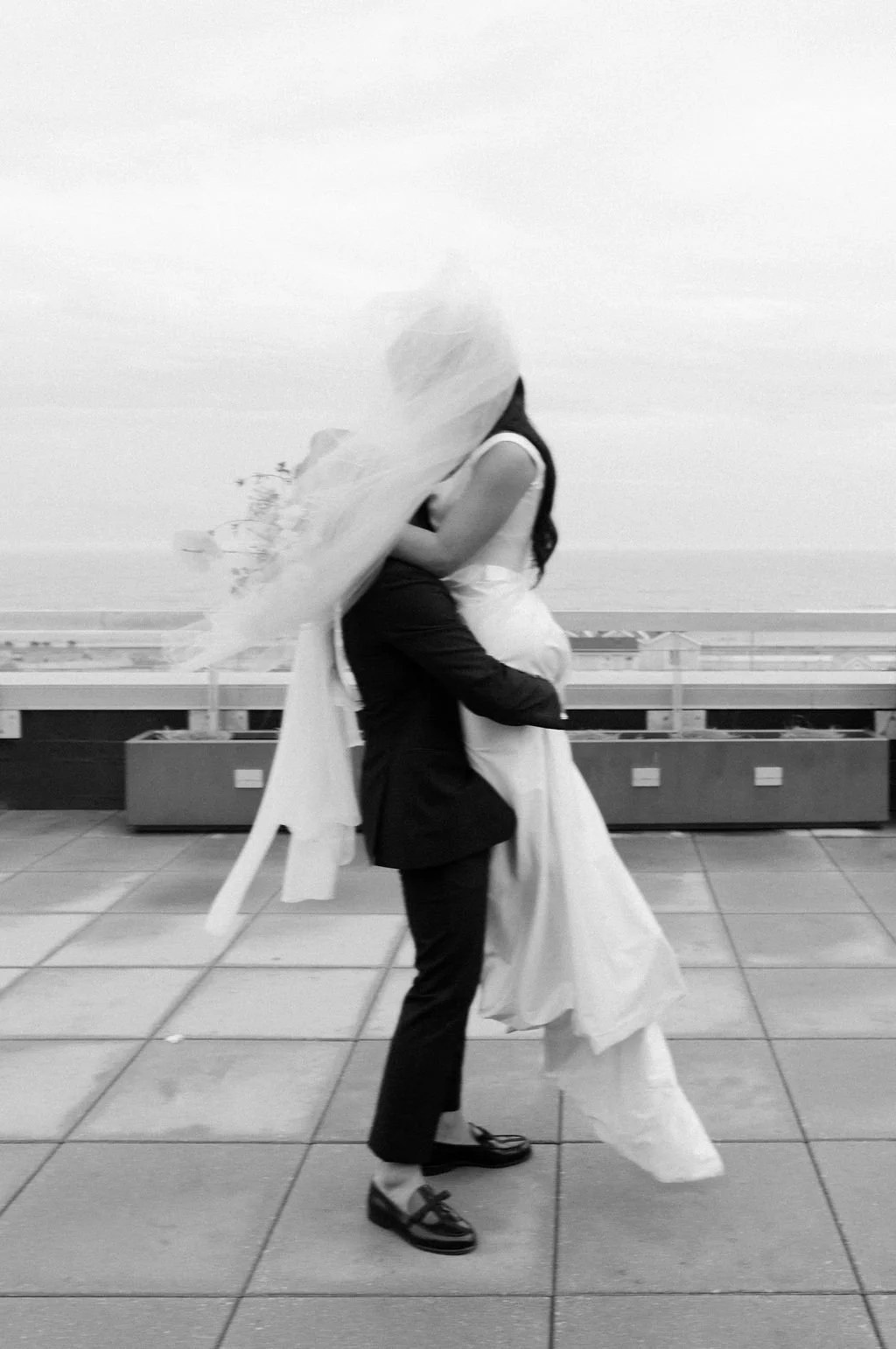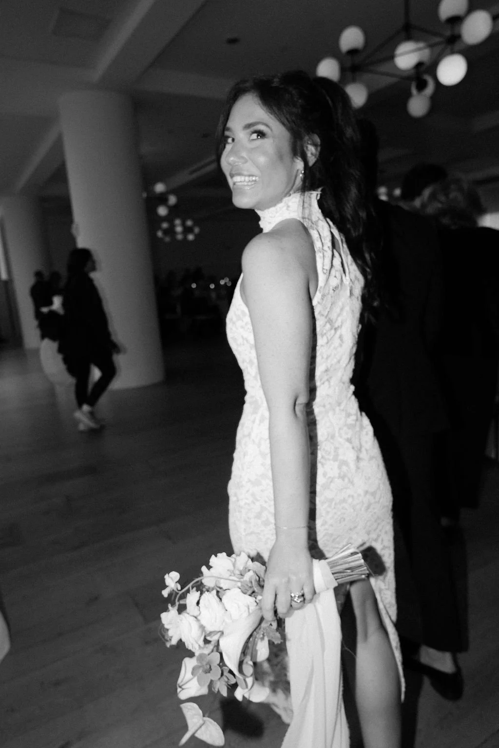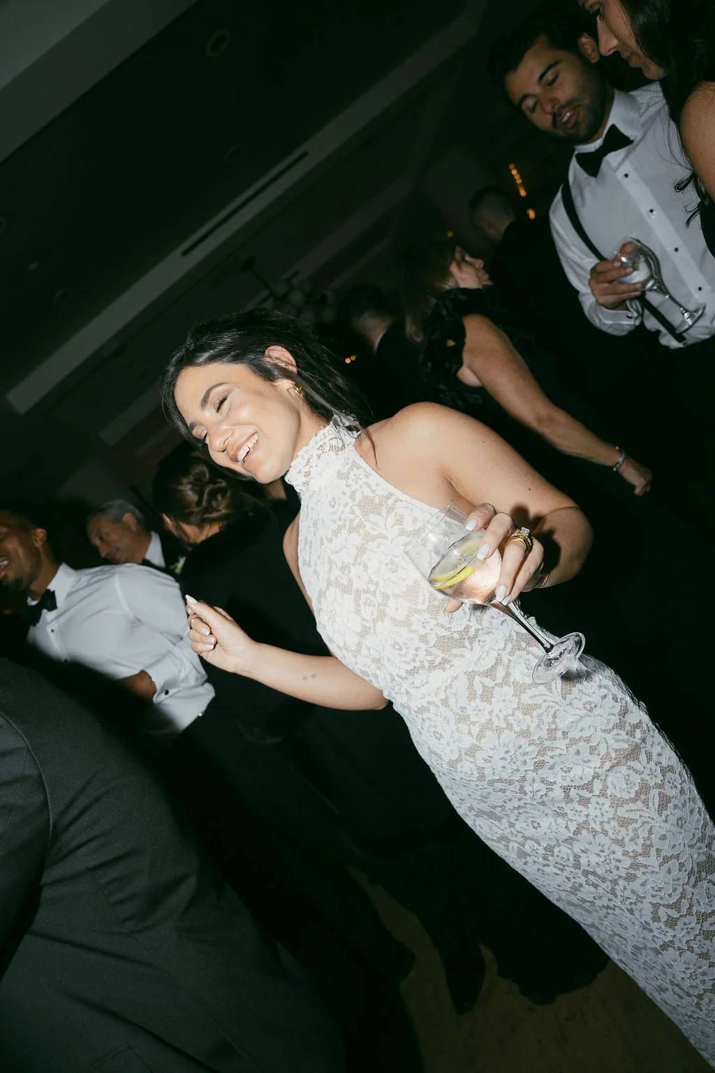 The couple’s wedding day was a study in modern elegance, with a neutral palette of black, white, and lush greenery creating a timeless backdrop. Tables were accented with fresh fruit elements, adding subtle pops of color and texture throughout the space. The day included stunning bridal portraits that captured the couple’s effortless style, and a surprise visit from their beloved puppy added a playful, personal touch. Minimalist design, thoughtful details, and heartfelt moments combined for a celebration that felt both chic and intimately joyful.