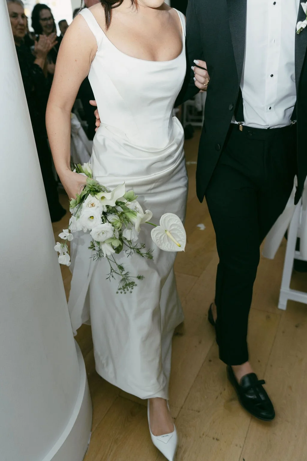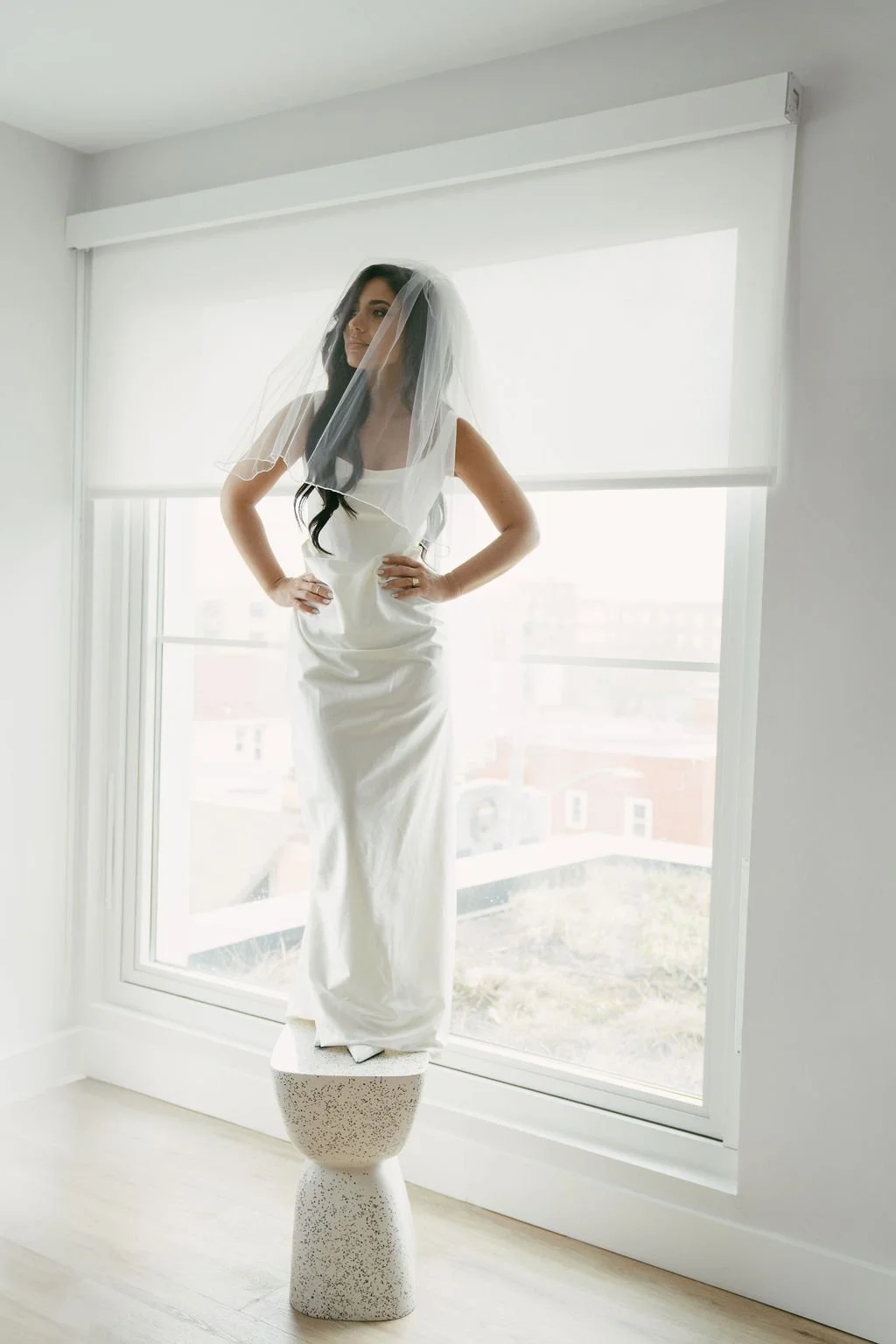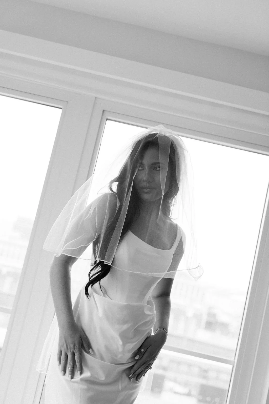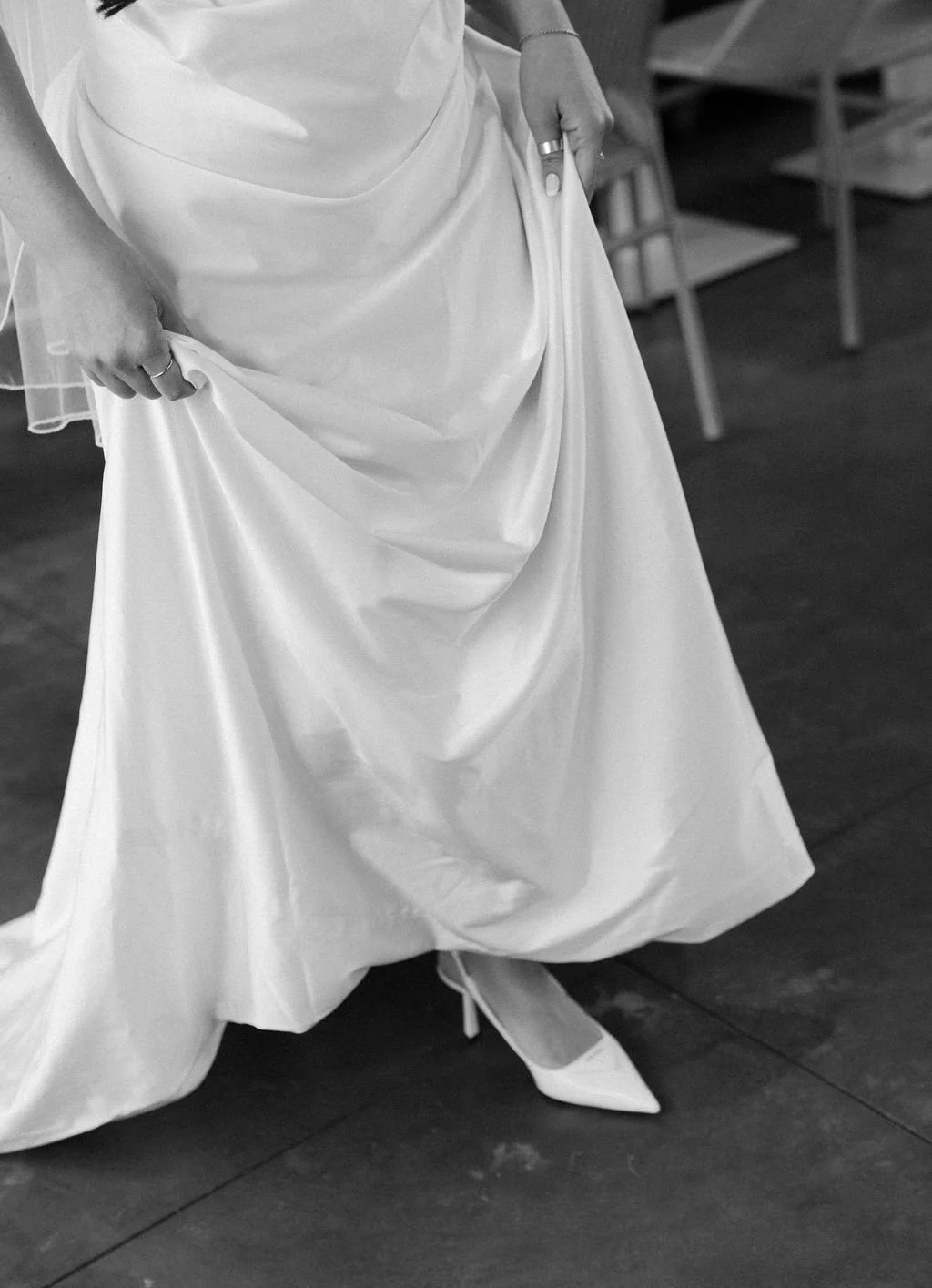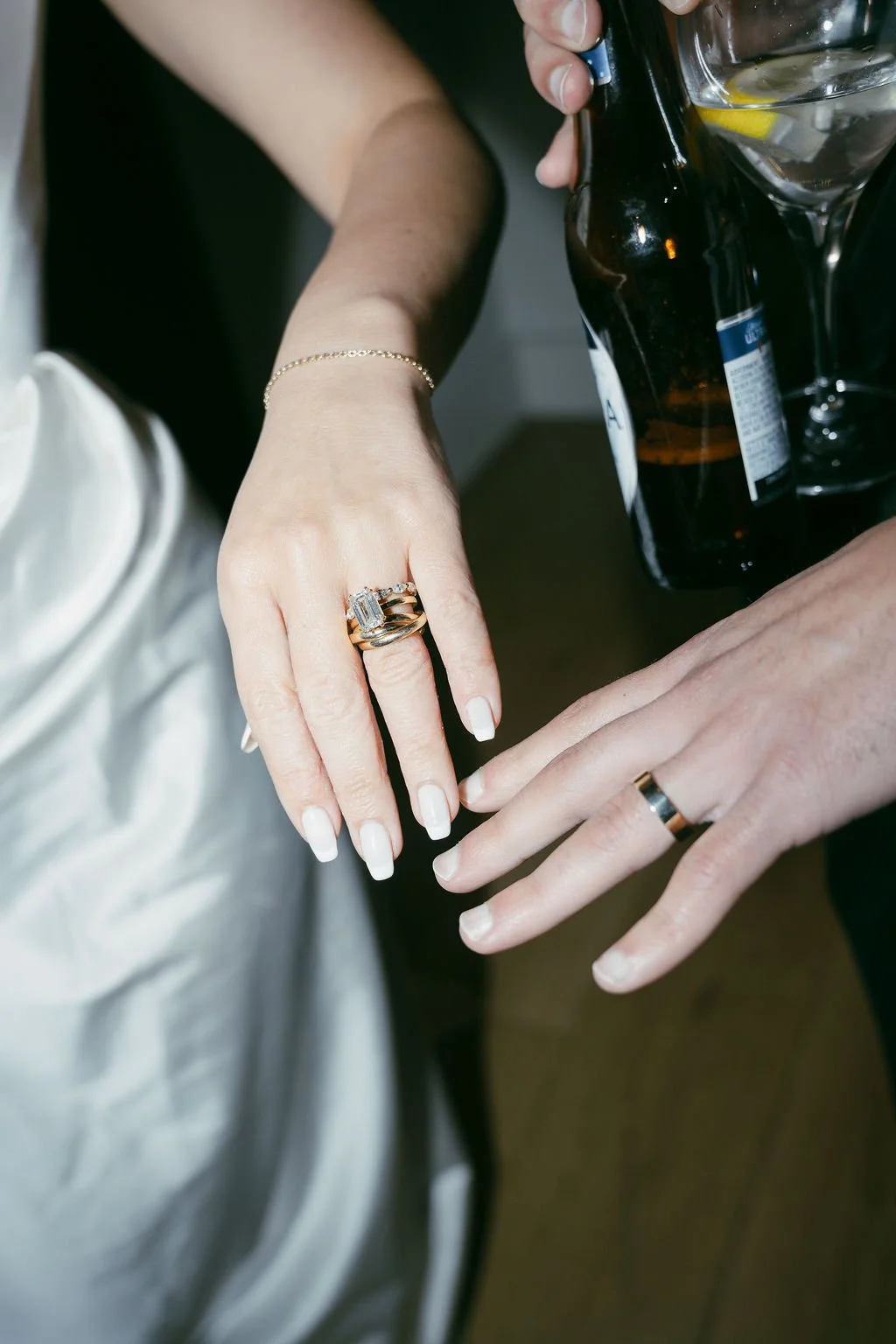 The couple’s wedding day was a study in modern elegance, with a neutral palette of black, white, and lush greenery creating a timeless backdrop. Tables were accented with fresh fruit elements, adding subtle pops of color and texture throughout the space. The day included stunning bridal portraits that captured the couple’s effortless style, and a surprise visit from their beloved puppy added a playful, personal touch. Minimalist design, thoughtful details, and heartfelt moments combined for a celebration that felt both chic and intimately joyful.