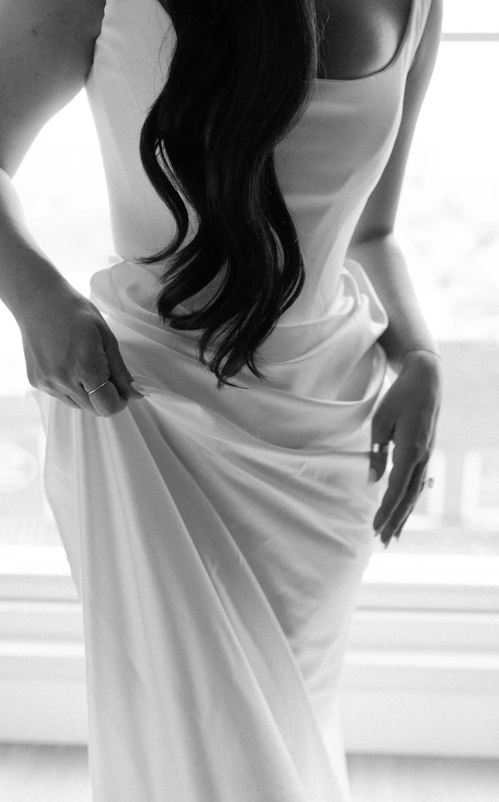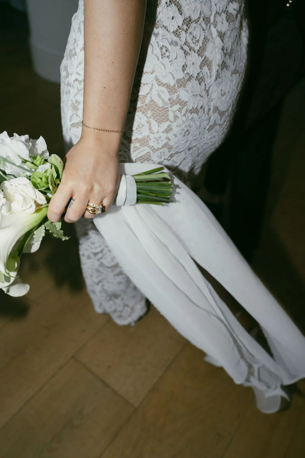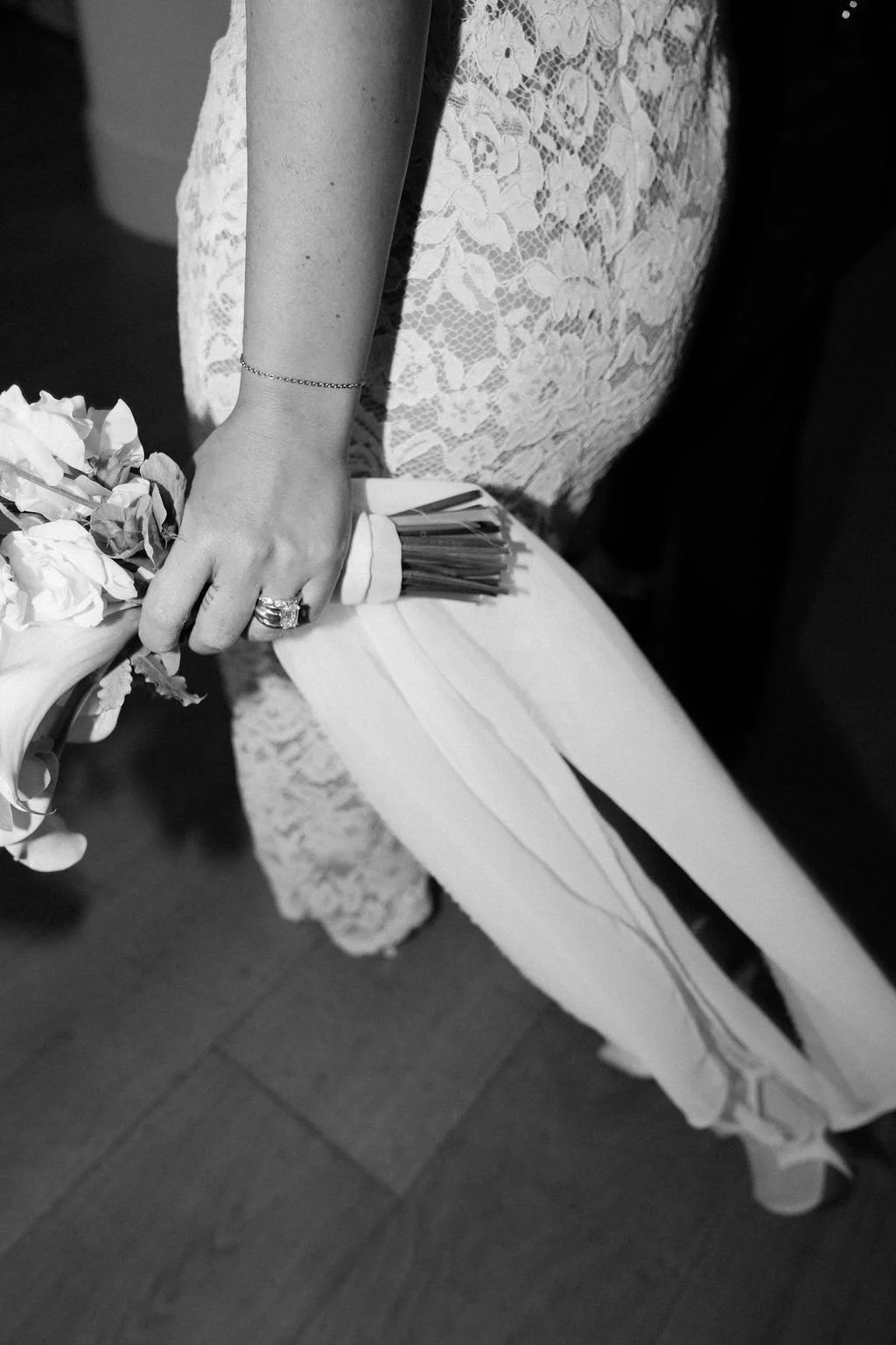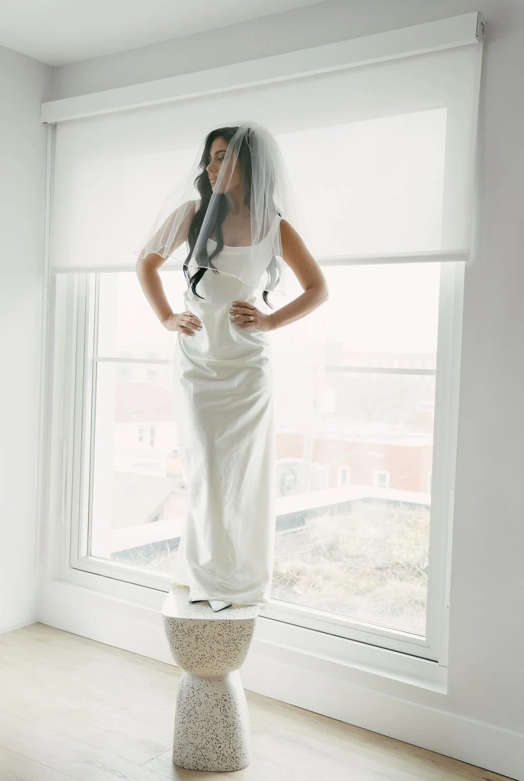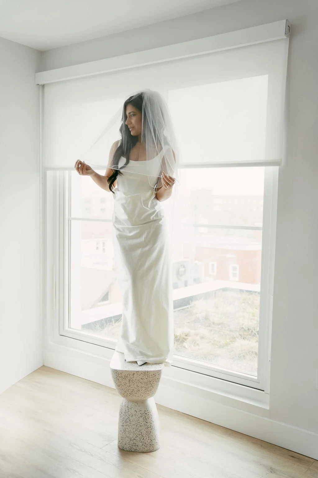The couple’s wedding day was a study in modern elegance, with a neutral palette of black, white, and lush greenery creating a timeless backdrop. Tables were accented with fresh fruit elements, adding subtle pops of color and texture throughout the space. The day included stunning bridal portraits that captured the couple’s effortless style, and a surprise visit from their beloved puppy added a playful, personal touch. Minimalist design, thoughtful details, and heartfelt moments combined for a celebration that felt both chic and intimately joyful.